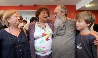 A Soumoulou, Erika Apfelbaum entourée de Gérard et Danièle, les petits-enfants de Gabrielle Navailles. (Ascencion Torrent)