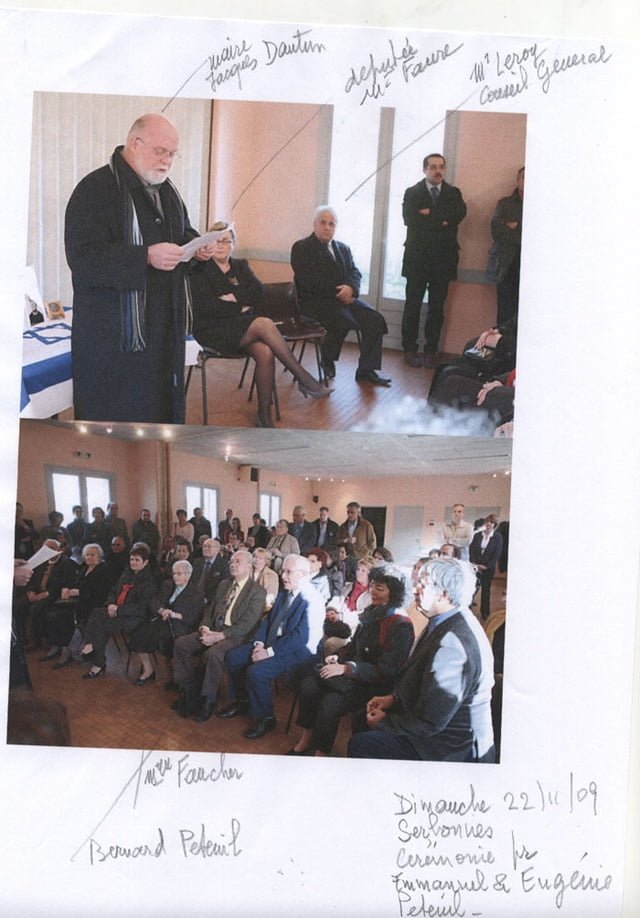Le 29 juin 2008, l’Institut Yad Vashem Jérusalem a décerné le titre de Justes parmi les Nations à Monsieur Emmanuel Peteuil et à son épouse Eugénie Peteuil.