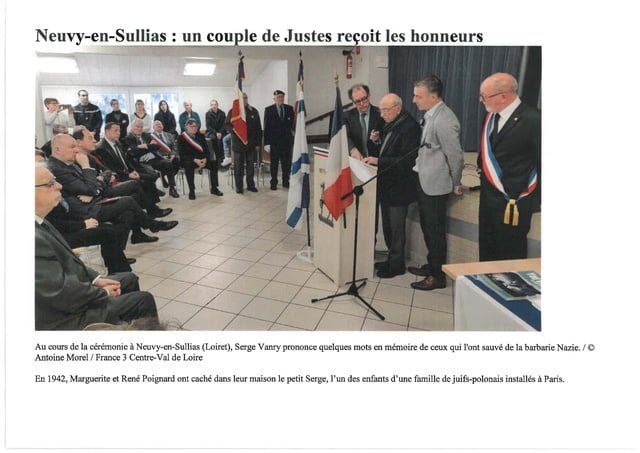 Le 26 septembre 2017, l’Institut Yad Vashem de Jérusalem a décerné le titre de Juste parmi les Nations à Monsieur René Poignard et à son épouse Madame Marguerite Poignard.