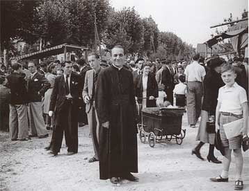 Le père Marie-Amédée Folliet était le curé de la paroisse de St.Joseph des Fins à Annecy en Haute-Savoie. Il faisait également de la Résistance et, sans se soucier des graves dangers qu’il courait, venait en aide aux Juifs, aux réfugiés et à tous les ennemis du régime nazi. Dans leur témoignage après la guerre, deux réfugiés juifs allemands, Elisabeth et Albert Bach, racontent comment, en automne 1942, ils s’étaient enfuis pour échapper à la déportation et étaient arrivés à Annecy. Ils s’étaient adressés au père Marie-Amédée, qui les cacha et les nourrit pendant de nombreux jours, les sauvant ainsi des dénonciateurs toujours à l’affut de Juifs. Les Bach voulaient tenter de passer en Suisse par les sentiers de montagne mais le prêtre les en dissuada car c’était trop périlleux. Il leur trouva un asile dans le village de Nazaire de Bourgogne, un lieu relativement sûr et où ils pouvaient compter sur l’aide de résistants français en cas de besoin. Elisabeth et Albert Bach soulignent encore que le prêtre professait l’amour de la Bible et des Juifs. Il se montrait chaleureux vis-à-vis de ceux qu’il aidait si courageusement et efficacement. Il poursuivit ses activités sans fléchir jusqu’au jour où, comme elles avaitent été découvertes, il fut arrêté. Déporté dans un camp de concentration en Allemagne, il tomba gravement malade mais survécut. A son retour en France il passa de longues années à l’hôpital.