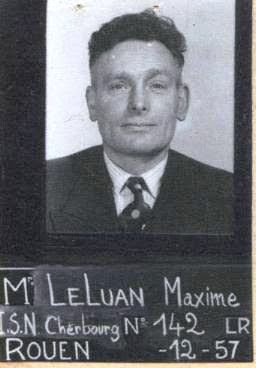 Maxime Leluan habitait à Cherbourg (Manche) où il travaillait au port militaire. Lorsque les Allemands occupèrent la ville en juin 1940, Maxime, alors âgé de 34 ans, démissionna, ne voulant pas travailler pour l’occupant. Il s’engagea dans la police et atteignit rapidement le grade d’inspecteur. Quand le réseau de résistance clandestin Libé-Nord fut créé au début du mois d’août 1942, il en devint membre aussitôt. Sa qualité d’officier de police lui permettait d’obtenir des informations vitales. Un an auparavant, il avait fait la connaissance de Raymond Calamaro, un dentiste juif. Pour lui permettre de continuer à exercer sa profession malgré la législation anti-juive, l’inspecteur lui procura une carte d’identité qui ne portait pas la mention Juif. Au mois de mai 1942, il se rendit chez le dentiste et l’avertit de s’enfuir sans délai. Le soir même, Raymond Calamaro quitta la ville et partit chez ses beaux-parents à Paris. Ce n’est qu’après la guerre qu’il apprit que l’inspecteur avait reçu un blâme pour sa « négligence ». En effet, deux autres policiers étaient censés venir l’arrêter le lendemain. Toutefois Maxime Leluan ne fut pas traduit en justice, ses supérieurs préférant sans doute ne pas ébruiter l’affaire. Léon Blumzak, autre habitant juif de Cherbourg, échappa à la déportation à la fin de l’année 1943 grâce à une fausse carte d’identité fournie par Maxime. Si le policier avait été pris, il aurait subi une lourde peine. Les Allemands se montraient particulièrement rigoureux à Cherbourg, sans doute du fait de l’importance stratégique du port.