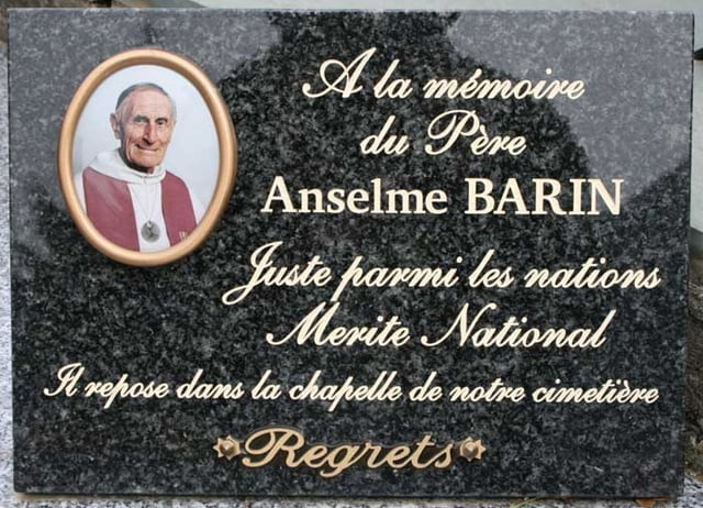 Le 9 janvier 1994, l’Institut Yad Vashem de Jérusalem a décerné au Père Anselme Barin le titre de Juste parmi les Nations.