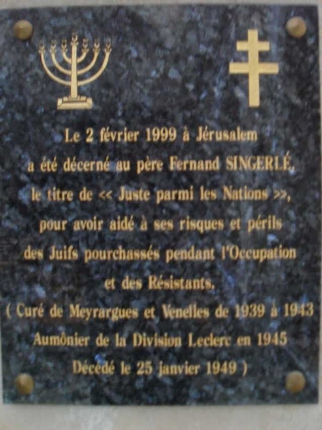 Fernand Singerlè est un prêtre catholique très apprécié de sa congrégation à Venelles et Meyrargues dans les Bouches du Rhône. L’abbé Singerlè est actif dans plusieurs réseaux de résistance y compris un réseau de civils et d’employés administratifs qui cache des juifs qui parviennent à s’enfuir du camp des Milles.