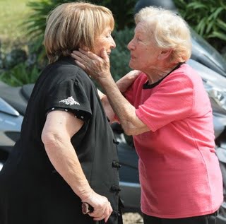 Émouvantes retrouvailles entre Rebecca Maraschek et Jeanine Mansueti, hier, à Mougins.A.-B.J.