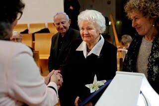 Alicja Mularska, la fille d'un couple polonais reconnu "Justes parmi les Nations" recevant à Jérusalem la médaille de Yad Vashem, le mémorial de la Shoah le 30 janvier 2018 Photo THOMAS COEX. AFP