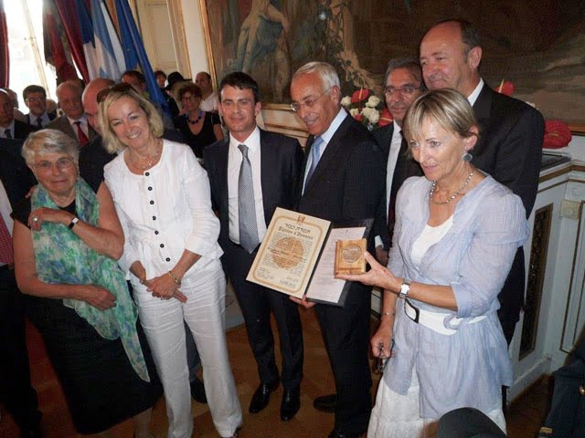Remise du diplôme aux petits-enfants de Louis et Jeanne Bieber en présence de Manuel Valls, ministre de l'Intérieur, Yossi Gal, ambassadeur d'Israël en France, et Roland Ries, sénateur-maire de Strasbourg – – © Cl. Truong-Ngoc