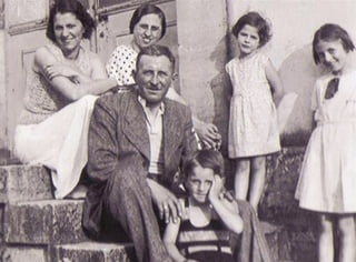 Photo datant de 1935. On reconnaît au premier plan Auguste Louis Bieber avec son fils Claude. Au second plan, de gauche à droite : Jeanne Beauchet, épouse d’Auguste Bieber, Alice Reichner et sa fille, Simone, (la future enfant cachée) Christiane, la fille