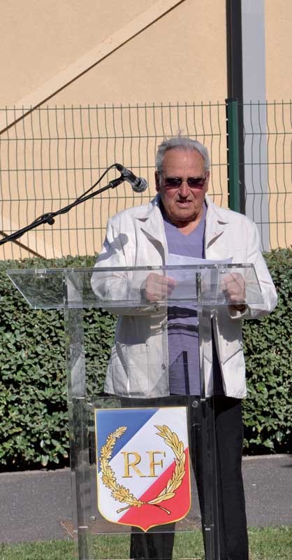 Après le traditionnel dépôt de gerbes sur la stèle rendant hommage aux Justes agathois, c’est Louis Carausse, Ancien Combattant, Juste et fils de Juste agathois, qui a pris la parole pour évoquer les souvenirs de son enfance et du courage de son père, quand ce dernier a caché un jeune Polonais durant de long mois dans sa maison. “Je préfère me souvenir des faits qui remplissent mon cœur. A cette époque, nos pourchassés sont cachés dans les vignes, entre le canal et la route de Bessan. Mais arrive alors la période des vendanges, et il faut trouver de nouvelles cachettes. C’est ainsi qu’un Polonais âgé de 20 ans est entré dans la famille Carausse. Mon père l’a hébergé et il a partagé les repas avec la famille. Personne ne s’est douté de sa présence. Il parlait un très bon français et c’était un garçon fort sympathique. Le 30 décembre, le temps a été venu pour lui de prendre le maquis de la Montagne Noire. Les années sont passées, la guerre a pris fin et, un beau jour, on a frappé à la porte du magasin. C’était ce jeune homme que nous avions hébergé et qui venait nous remercier. Il a proposé à mon père une compensation financière. Mon père a refusé et a déclaré “sauver un homme menacé dans sa vie et lier une amitié avec lui me suffisent amplement”.” Louis Carausse a également donné sa définition d’un Juste : “c’est quelqu’un qui, au péril de sa vie, a sauvé un être humain, qui, sans lui, aurait été déporté dans un camp de la mort”.