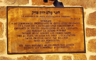 Une plaque commémorative du sauvetage des Juifs dans le village de Chambon-sur-Lignon. (Crédit photo : Wikipédia / CC BY-SA 4.0)