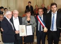 André Reveyron, très ému, a reçu au nom de ses parents, la médaille et le diplôme des « Justes parmi les nations », la plus haute distinction civile décernée depuis 1963 par l’Etat hébreu à des personnes non juives qui, au péril de leur vie, ont aidé des Juifs persécutés par l’occupant nazi. Leur nom sera gravé sur le Mur d’honneur dans le jardin des Justes parmi les nations à Jerusalem. Il a vivement remercié tout le monde, sans oublier « son frère » , Henri Klein.