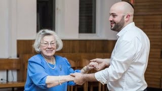 Jonny Daniels danse le Foxtrot avec Alicia Schnepf, secrétaire de la Société polonaise des Justes parmi la Nation, à Varsovie, le 10 avril 2016. (Courtesy: From the Depths)