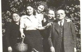 Une photo prise avant la guerre : De gauche à droite : Lucile Godrie, sa fille Luce, Renée Bodenheimer, Salomon et Elvire Bodenheimer. C'est Robert, le fils, qui a pris la photo.