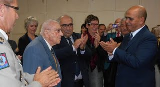 Point d’attente protocolaire. Impatient de présider une cérémonie officielle sur le territoire de son enfance, Kader Arif, secrétaire d’État aux Anciens Combattants et à la Mémoire, est arrivé bien avant l’heure du rendez-vous, hier soir, à la mairie de Saïx. Il ne cachait pas son plaisir de remettre les insignes de chevalier de la Légion d’honneur à Gérard Persillon, 94 ans. En juillet dernier, ce Saïxol avait été honoré en tant que Juste parmi les nations, comme l’a rappelé Genevière Dura, maire de la commune en ouvrant cette cérémonie : «C’était il y a trois mois, ici même, monsieur Persillon, nous assistions à la remise de cette médaille reconnaissant le courage qui vous a permis de dépasser les risques encourus…» Son courage pour avoir permis à une jeune fille juive, Perla, pendant la Seconde Guerre mondiale, d’obtenir de faux papiers d’identité, d’être protégée par la directrice du collège de Limoux, lui évitant ainsi la déportation. À ces heures graves du conflit mondial, Gérard Persillon était commissaire de police dans l’Aude. Plus tard, il s’installa à Saïx avec sa famille. «Saïx, au cœur de l’Agout», où Kader Arif venait à pied, en vélo, retrouver des amis à la fête du village. Qui y revient en qualité de «ministre de la République pour rendre hommage à un héros comme Gérard Persillon, vous qui avez considéré que vous n’avez fait que votre devoir. Chaque ville a ses héros, Saïx a les siens, vous êtes de ceux-là, qui donnent leur vie pour préserver celle des autres. D’une autre, Perla, qui a fait le voyage jusqu’ici, depuis les Etats-Unis, en juillet, pour vous remercier… Votre acte est une preuve d’amour, une belle preuve d’amour adressée aussi à la France.» Appuyé sur sa canne, attentif au discours du secrétaire d’État, le vieux monsieur a vécu l’instant dignement avant de recevoir l’insigne honorable. Puis, d’un pas sûr, sortant un papier de la poche de son superbe costume gris, il s’est rapproché du micro pour adresser notamment au ministre : «Par ce geste, le gouvernement de la République reconnaît les efforts déployés par des populations… Où irait-on chercher les vertus nécessaires à l’accomplissement de missions sinon dans les rangs de la Légion d’honneur, vaillante cohorte où les noms de sacrifice et don de soi ne sont pas des lieux communs… Servir dans la Légion d’honneur entraîne surtout l’obligation morale d’être prêt à défendre ces vertus pour l’amélioration de l’humanité. En ce qui nous concerne, malgré l’âge et l’état de santé, nous sommes résolus à en être digne.» Gérard Persillon démontre ainsi, une fois encore, combien il était juste de le distinguer. Un homme «d’une simplicité formidable, d’une modestie et d’une humilité qui fait la fierté de notre commune», assure Genevière Dura.