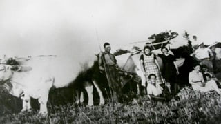 Jacques Salmona (au premier plan, dans l’herbe) était âgé de 13 ans lorsqu’il a été accueilli par Émile Rautureau (debout, à gauche), à la ferme de la Jaronnière. | Ouest-France