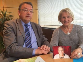La fille de Madeleine Herbert, Monique-Marie Rivoallan, avec la photo de sa mère, nommée Juste en 2011. –