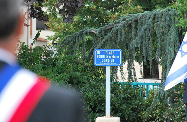 En face d’une école maternelle et en vis-à-vis de l’Hôtel-Dieu où Sœur Madeleine CORDIER a exercé son service auprès des malades pendant 40 ans.