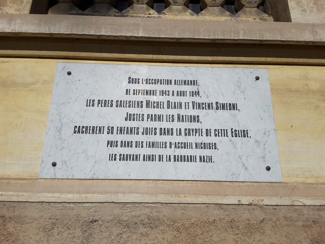 Plaque apposée sur le mur de l’église Notre Dame Auxiliatrice